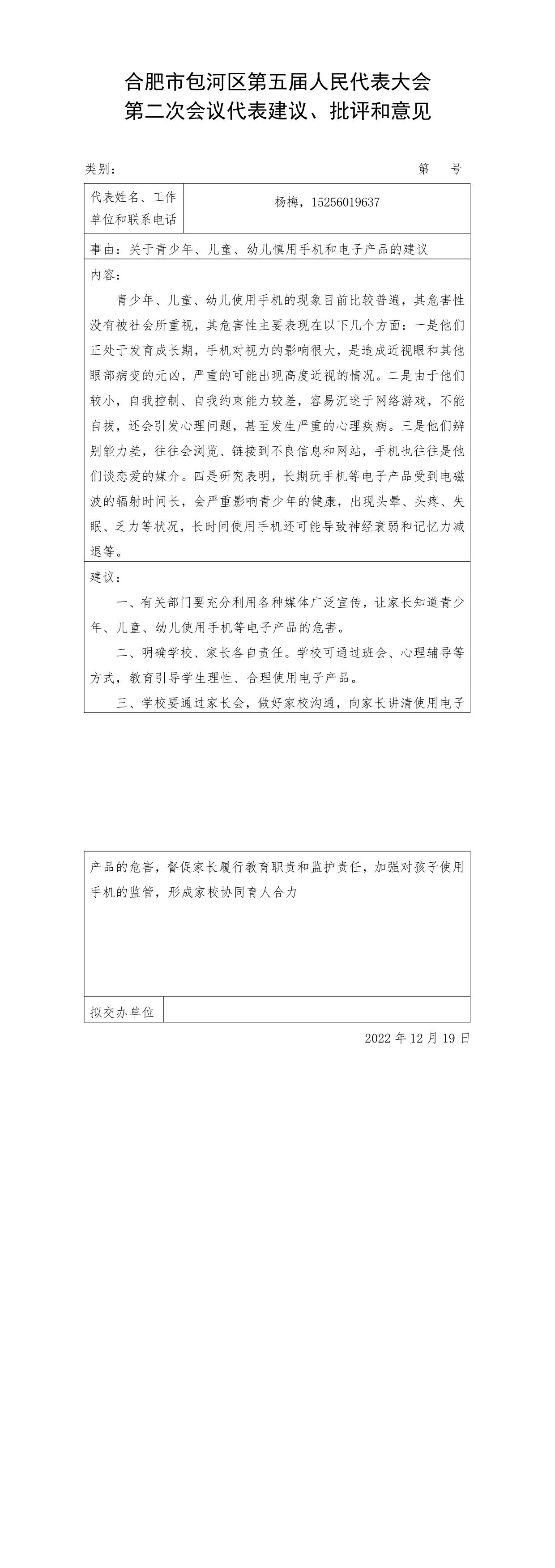 杨梅代表关于青少年、儿童、幼儿慎用手机和电子产品的建议