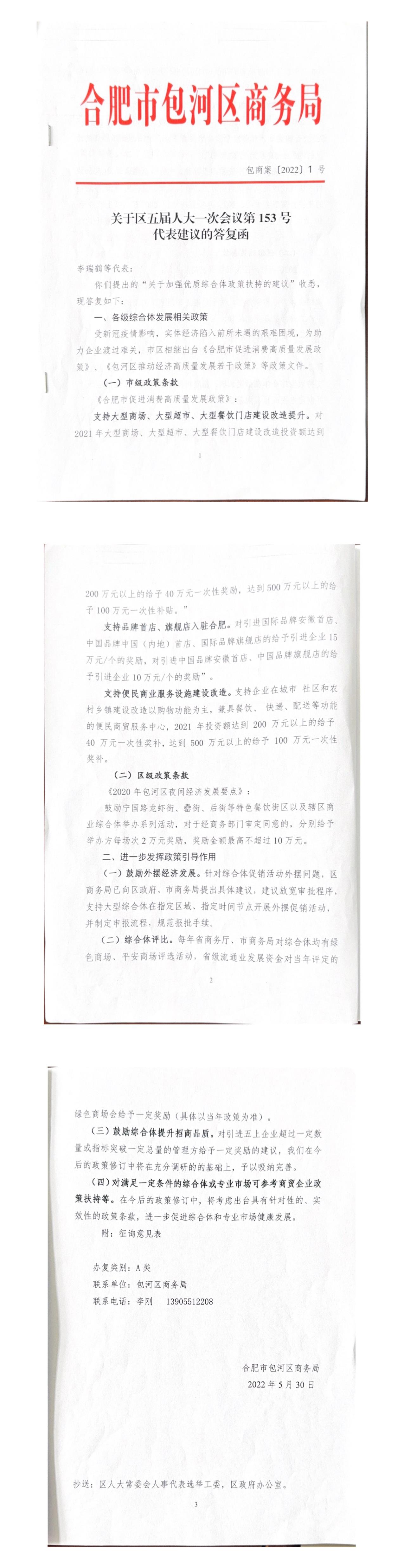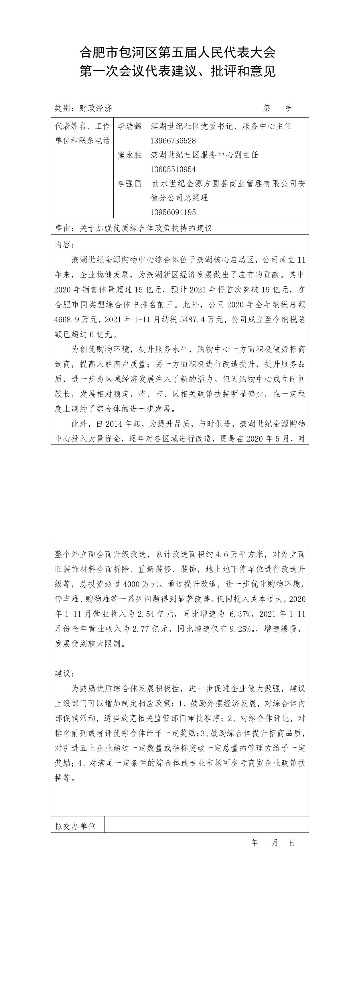李瑞鹤等3名代表关于加强优质综合体政策扶持的建议