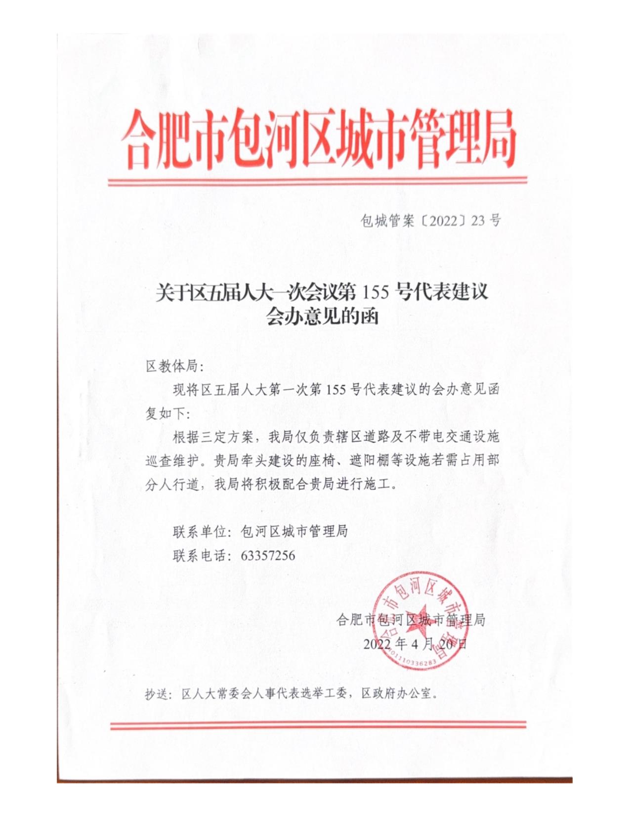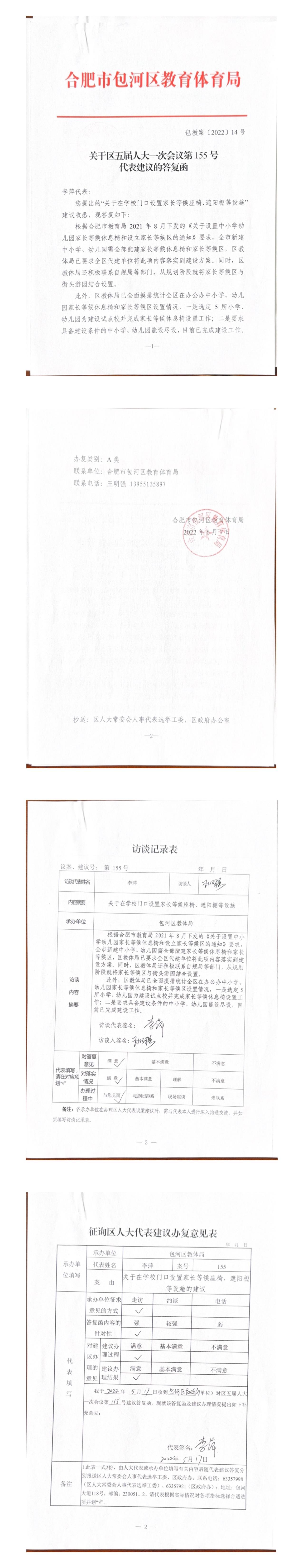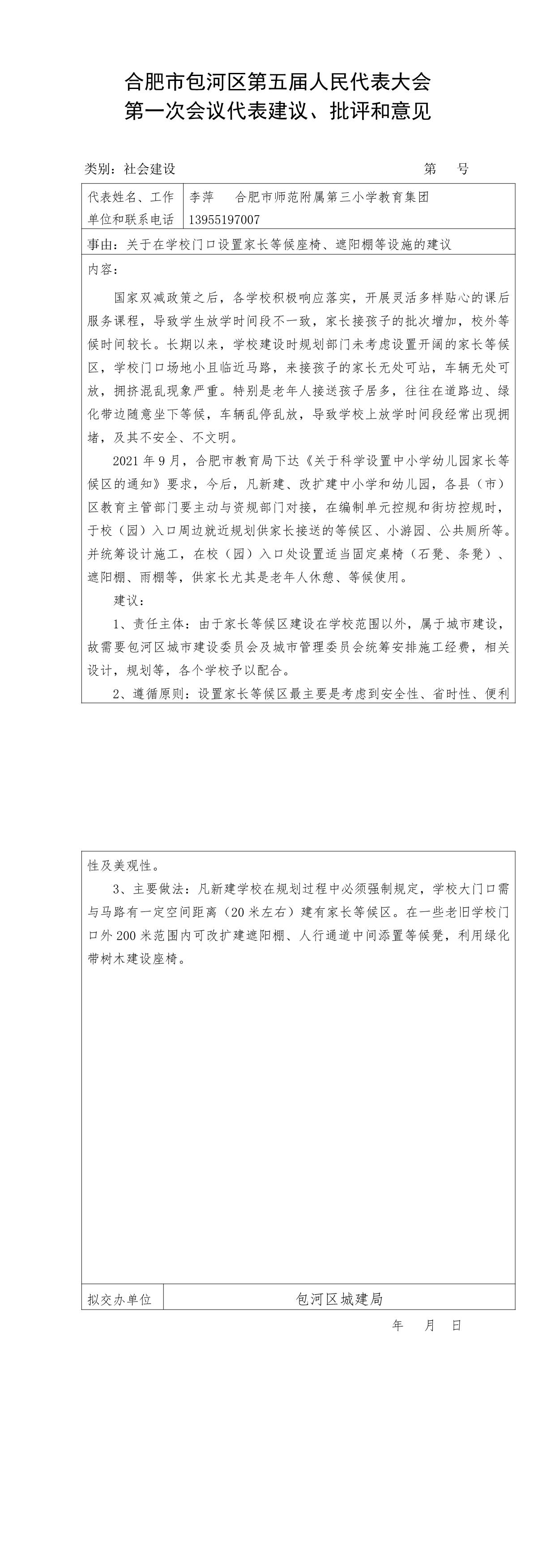 李萍代表关于在学校门口设置家长等候座椅、遮阳棚等设施的建议