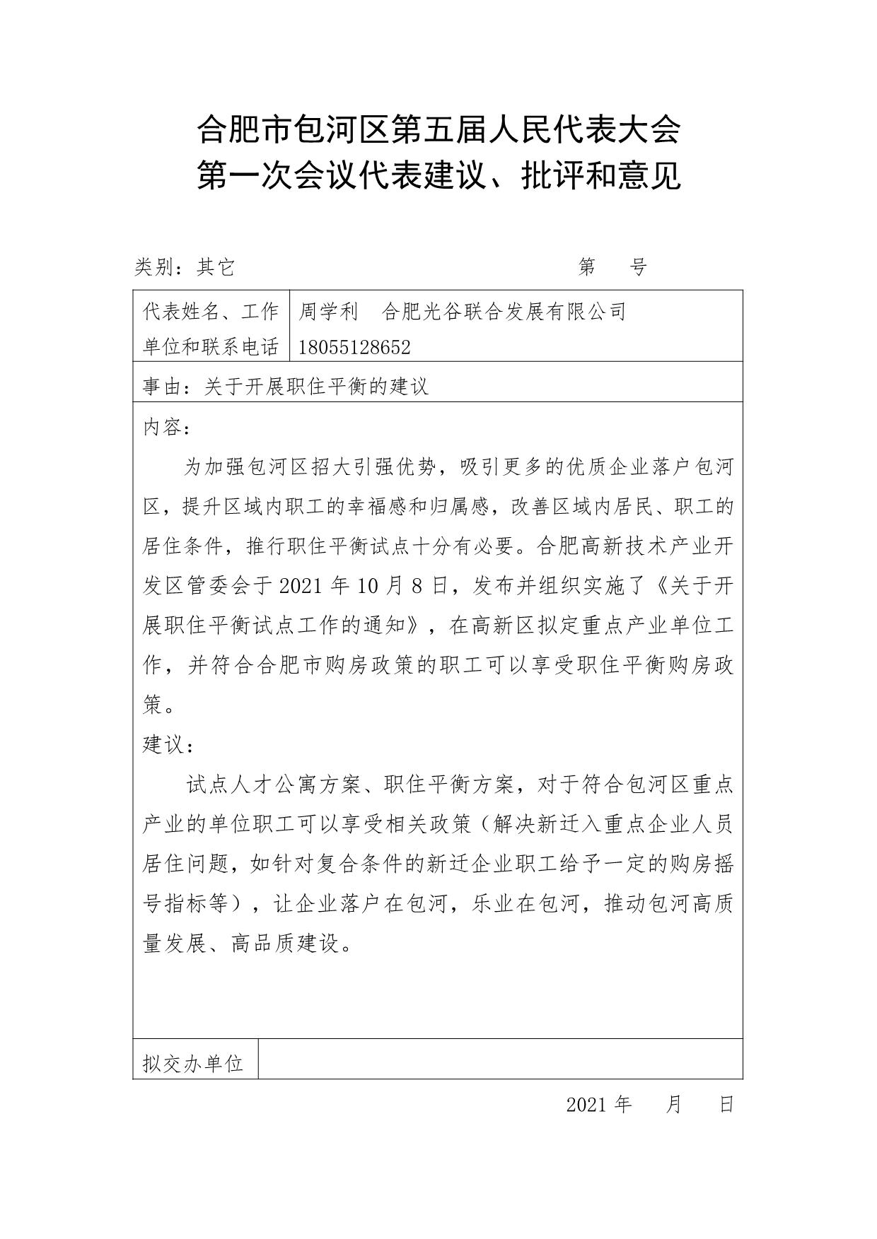 周学利代表关于开展职住平衡的建议
