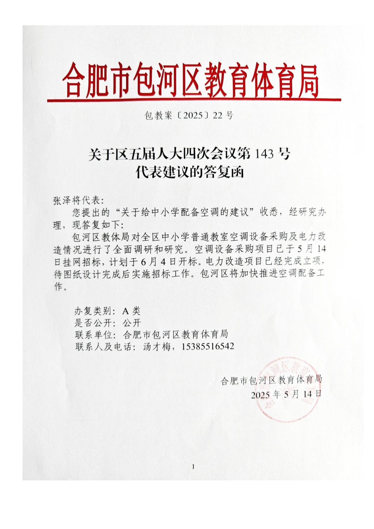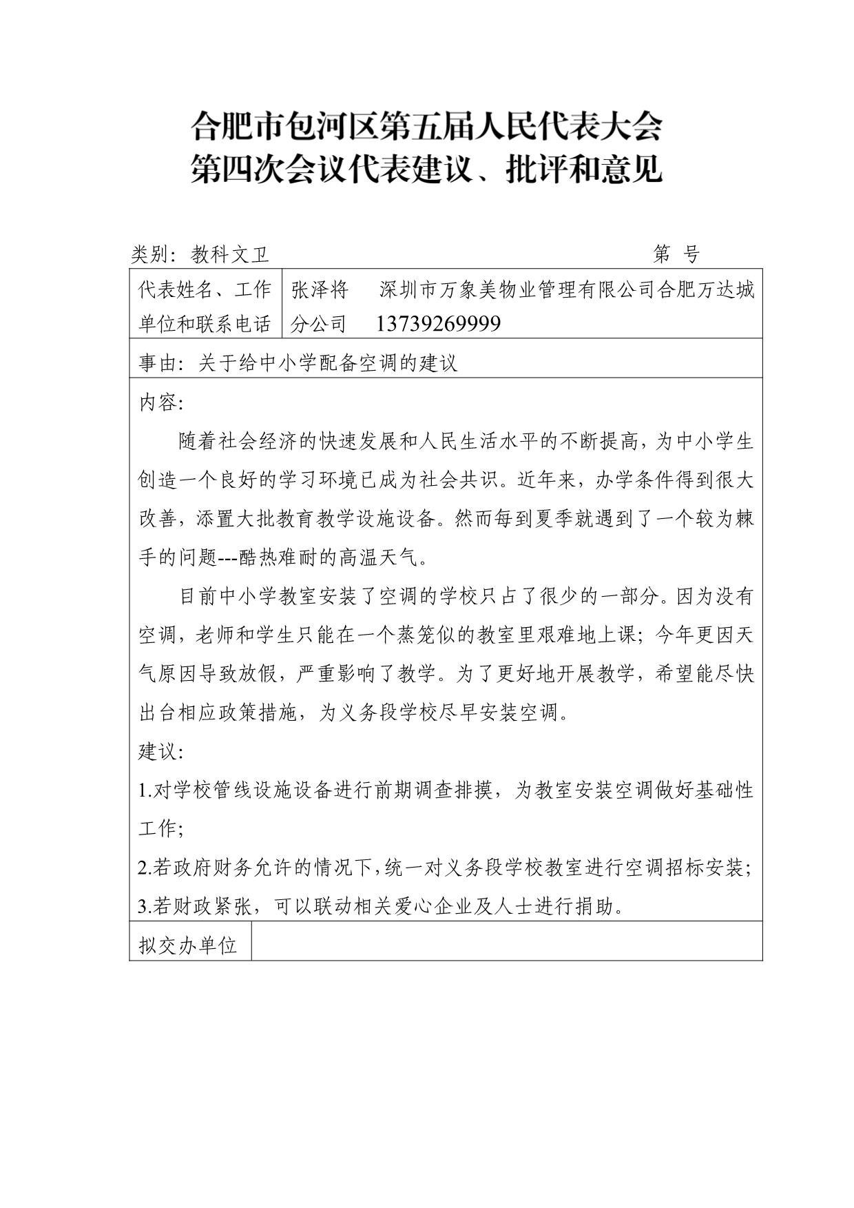 关于给中小学配备空调的建议-张泽将
