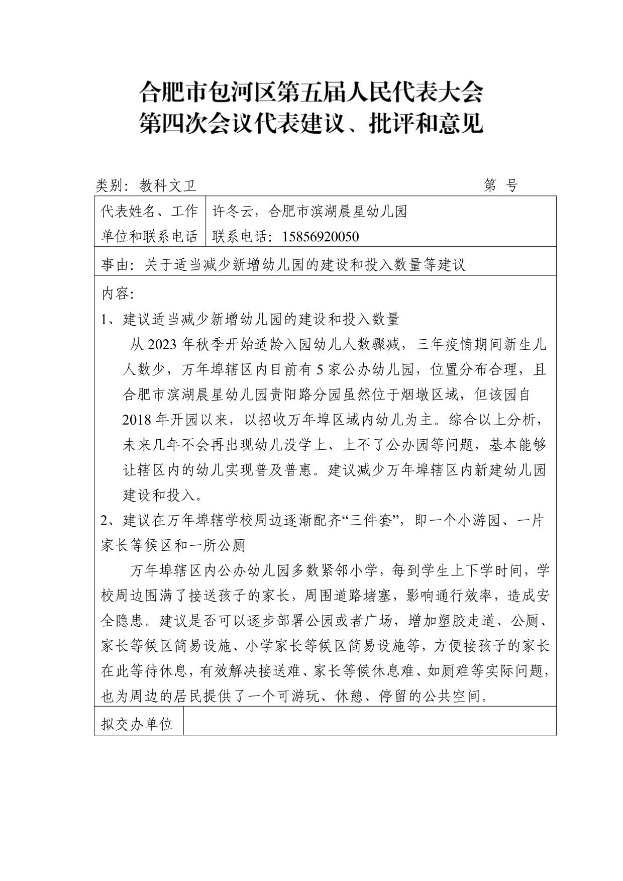 关于适当减少新增幼儿园的建设和投入数量等建议-许冬云