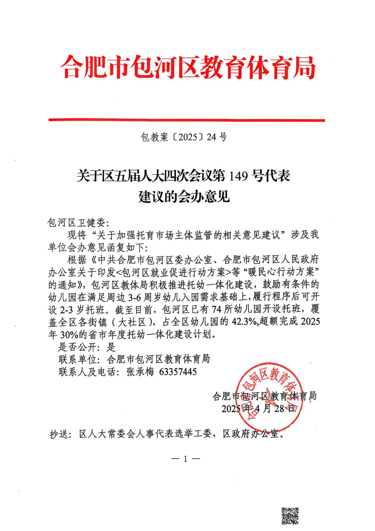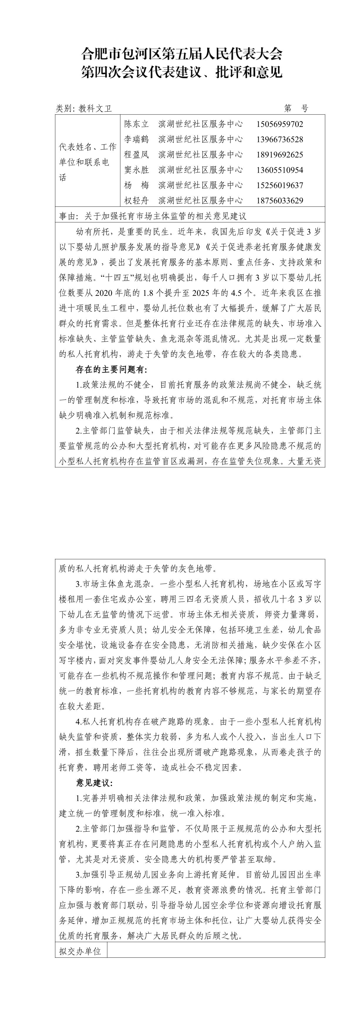 关于加强托育市场主体监管的相关意见建议-陈东立等6名代表