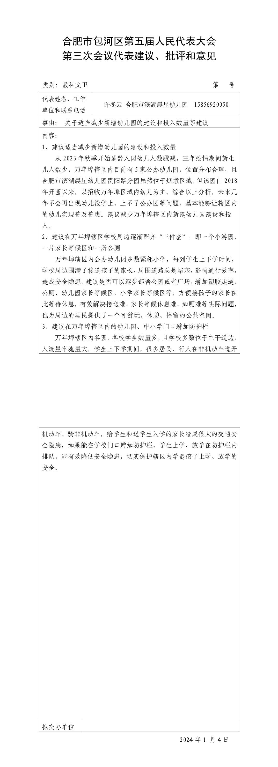 关于适当减少新增幼儿园的建设和投入数量等建议