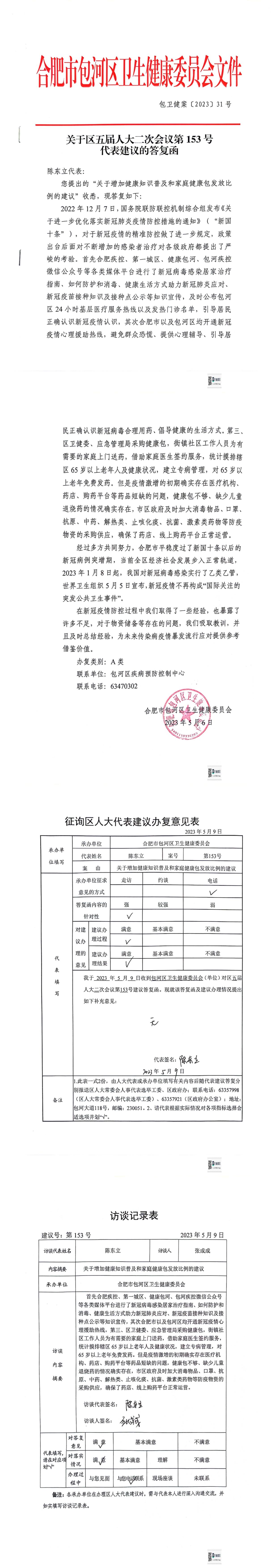陈东立代表关于增加健康知识普及和家庭健康包发放比例的建议